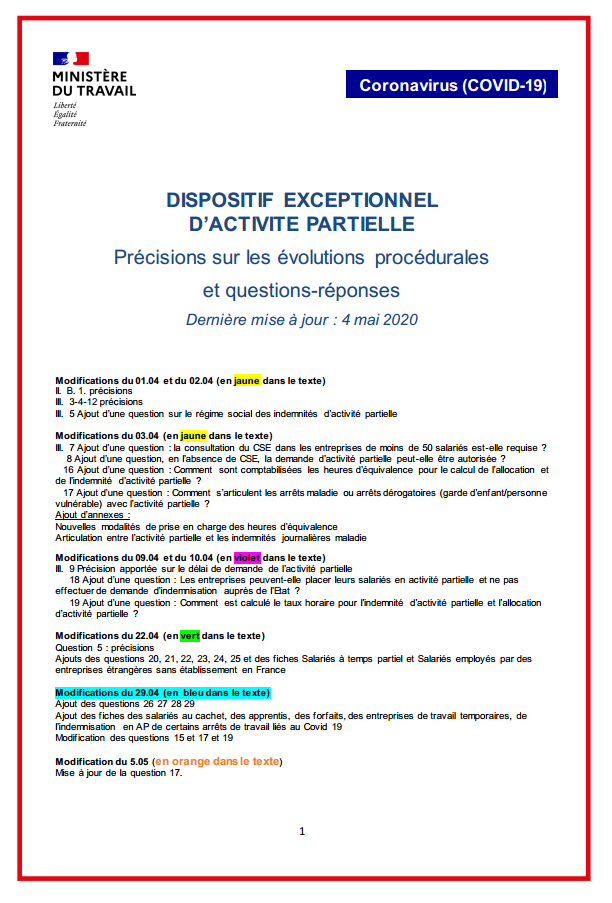En complément à nos hors-série spécial COVID, nous vous invitons à consulter la dernière mise à jour du 4 mai 2020 du Ministère du travail sur le dispositif d'activité partielle.